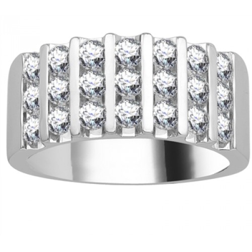 This sleek triple row diamond set mens ring, measures approx 9mm wide with a flat shape band profile.