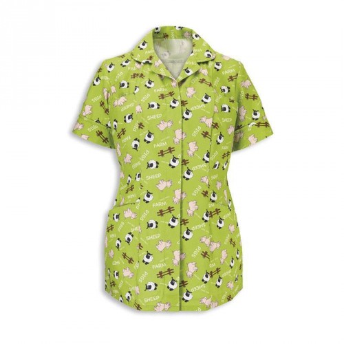 Fun piggy and sheep design on front and back, perfect for those working with younger patients. Hip and chest pockets make the tunic practical, while the polyester/cotton fabric is hardwearing. A concealed zip ensures the tunic looks smart and professional and has an open-ended zip front for improved infection control. Concealed zip front. Two hip and chest pockets. Double action back and vents. Back length 75 - 81cm (increases with size).Aug-18
