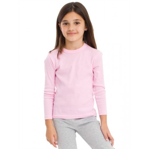4107 American Apparel Kids Baby Rib Long Sleeve Top. 100% Baby Rib cotton construction (Heather Grey contains 10% Polyester). Shrinkage: will shrink an average of one size when put in the dryer. This finer 1x1 rib knit features a comfortable stretch with excellent durability through repeated washings. Allows kids to be in motion, play hard and be themselves.