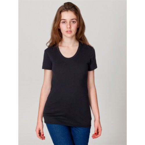 BB301 American Apparel Poly-Cotton Short Sleeve Women's Top. The women's version of the BB401 Poly-Cotton T-Shirt with a slightly scooped neckline. Ultra-comfy, feels like youâve owned it for years the moment you put it on, and for years to come. Poly-Cotton (50% Polyester / 50% Cotton) construction. Durable rib neckband. Form-fitting.