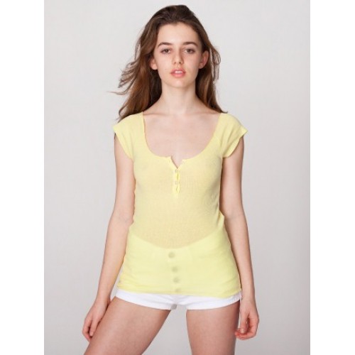 American Apparel Women's Henley Scoop Neck Cap Sleeve Top