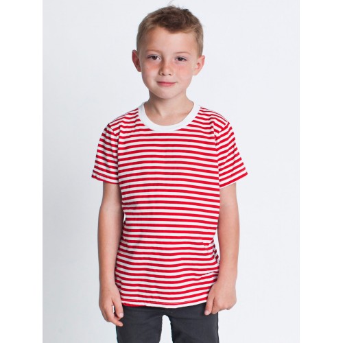 SP201 American Apparel Youth Poly-Cotton Striped Short Sleeve Crew Neck. Our striped 50/50 blend T-shirt, now available in a cute and comfy youth version. Poly-Cotton (50% Polyester / 50% Cotton) construction. Durable rib neckband. Not intended for sleepwear. Unisex. Fabric weight 3.7 oz/yd² (125 g/m²).