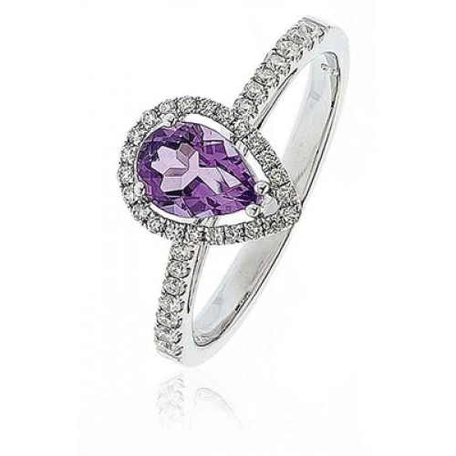 This beautiful dress ring features round brilliant cut diamonds and a beautiful amethyst, set in the centre. This attractive ring makes an excellent gift.