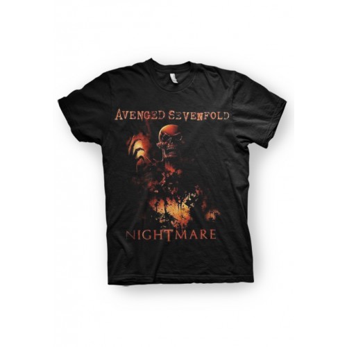 Short sleeved blacktee, featuring a round neckline and a large ‘Avenged Sevenfold’ Inner Rage print in red and orange. This is a regular fitting design. 100% Cotton Machine washable at 30 degrees