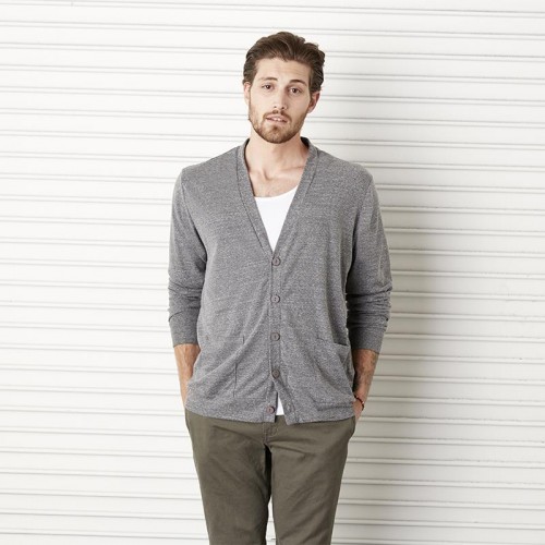 The Be107 from Bella + Canvas is a tri blend unisex v-neck cardigan. This garment is manufactured from a 190gsm 50% polyester, 37.5% combed and ring-spun cotton, 12.5% rayon material with a ribbed triblend finish, and tone on tone buttons. The Ribbed Triblend finish on this unisex cardigan gives a textured look to the fabric. When selecting your unisex clothing, the backing of a recognised brand name takes away a lot of the guesswork in selecting a suitable product. The Unisex wear from Bella + Canvas is an excellent choice.