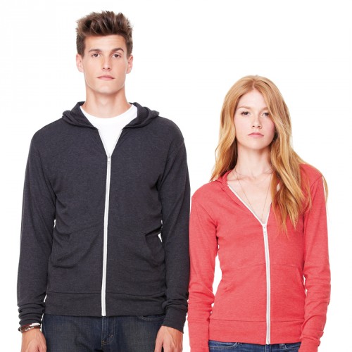 The BE108 from Bella + Canvas is a triblend, lightweight unisex hoodie. This item is another top quality hoodie from Bella + Canvas, one of the UKs leading designers and manufacturers of fashionable clothes for men , womens clothing, and unisex clothes. You can buy your online clothing purchases from Bella+Canvas, and be assured of a great garment every time. The BE108 is manufactured from a 190 gsm, 50% polyester, 25% combed and ring-spun cotton, 25% rayon fabric, with a triblend construction, and comes with no drawstrings. The triblend fabrication creates a textured look to this unisex hoodie. This garment is also suitable for embroidery. Please contact our knowledgable sales team for further information on all your embroidered hoodies, and personalised t-shirt needs.