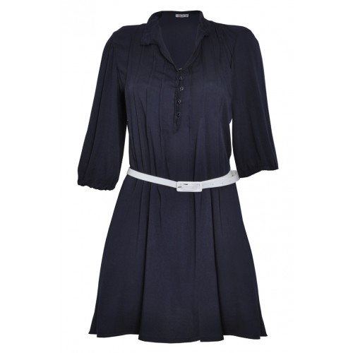 Button-up shirt dress3/4 sleeves with tie wristContrast skinny belt100% Viscose