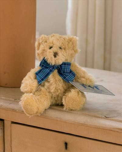 Bertie Bear with Concealed Hand Clip - MM004. This clever bear is perfect to deliver important notes, business cards, invitations or messages. Bertie has a concealed hand-clip in his left hand which means he offers two branding opportunities - clever, we think so! Bertie comes undressed in a size small and all small clothes will fit him. (NB this hand-clip bear is also available in medium size dressed in a smart pin stripe suit - MM022). Complies with EN71 European Toy Safety Regulations. Suitable from age 10 months. Fabric : Soft Plush