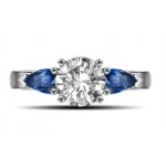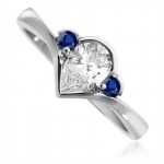 Oval shaped blue sapphire and diamond engagement ring set in a trilogy setting.
