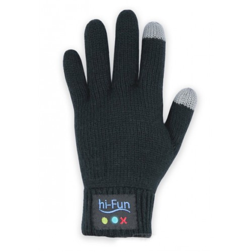 These amazing ladies black glovesletyou talk to your hand like when you were a kid, connecting to your phone via Bluetooth. These gloves keep your hands warm, just like normal gloves and are touchscreen friendly 95% Polyacrylonitrile, 3% Cotton, 2% Polyester USB rechargeable battery (included) Operating range of 12 metres Can be dry-cleaned One size fits most