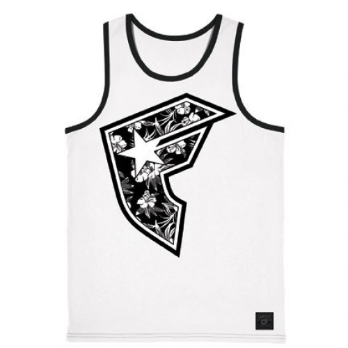 Loose fitting white vest featuring a large Fambiscus Badge of Honour chest print. Its finished with contrasting black binding around the neck and armholes. 100% Cotton. Machine Washable at 30 degrees.
