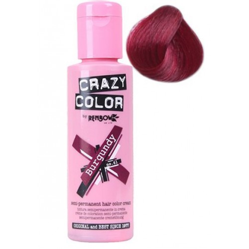 Crazy Color ‘Burgundy’ semi-permanent hair dye.For use on pre-lightened hair, lasts between 3 and 15 washes. Sorry we can only ship this product within mainland UK. Photographs show hair dye results on various hair types. Pictures include newly dyed, faded, bleached and unbleached hair. Dyes can have different results on different hair types. Doing a strand test prior to dying is recommended to ensure the desired colour is achieved. Directions for use- Do not mix with hydrogen peroxide Wash your hair with an acid balanced shampoo, such as ‘Biomilk’ or ‘Bioherbal’ to correct the acidity of the hair and allow for the best colouring results. Apply ‘Crazy Color’ to wet hair with a brush, laying colour on the entire length of the hair shaft, stopping about ¼-inch away from the scalp. Begin at the nape of the neck and work upward through the head of hair. Comb ‘Crazy Color’ until it becomes frothy. This indicates that the complex colour pigments used in ‘Crazy Color’ have penetrated into hair. Lighter shades of ‘Crazy Color’ will require more combing to obtain maximum results. ‘Crazy Color’ will process at room temperature in 15 minutes. More resistant hair may benefit from placing a plastic cap on the hair and processing for 30 minutes. *Please Note:Skin Patch Testing is highly recommended before using any hair dye product. If a reaction occurs rinse off immediately and discontinue use.