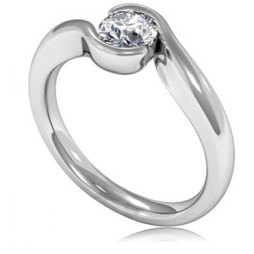 This single stone ring has continued to be a hugely popular design with our customers. A round cut diamond sits within a semi bezel setting, with tapered shoulders. This design is simple yet striking, drawing customers back again and again.