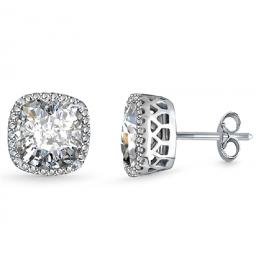 A Stunning pair of designer halo diamond earrings surrounded by round brilliant cut diamonds around the centre stone set in a pave/prong setting.