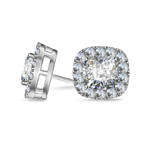 A Stunning pair of designer halo diamond earrings surrounded by round brilliant cut diamonds around the centre stone set in a pave/prong setting.
