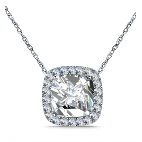 Cushion Shaped Diamond Single Halo Pendant