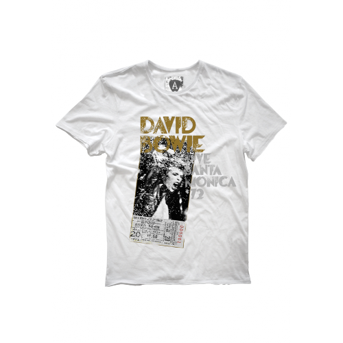 Slim fitting white t shirt featuring a large David Bowie Live in Santa Monica 1972 print and a unique vintage finish. It has a raw edge detail around the collar, sleeves and bottom hem line. 100% cotton Machine Washable at 30 degrees. Slim fitting white t shirt featuring a large David Bowie Live in Santa Monica 1972 print and a unique vintage finish. It has a raw edge detail around the collar, sleeves and bottom hem line. 100% cotton Machine Washable at 30 degrees.