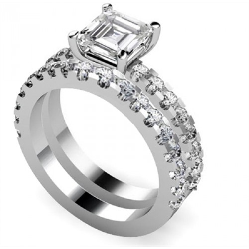 Asscher Diamond Shoulder Set Ring With Matching Band