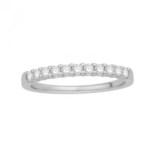 A diamond set eternity ring with round diamonds set in a prong setting. Approx 2mm wide.