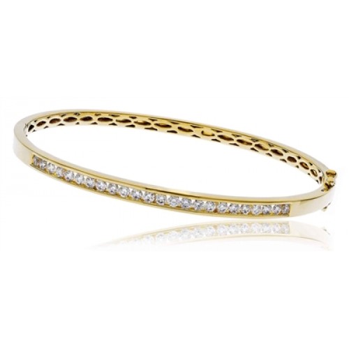 A diamond set bangle with round brilliant cut diamonds set in a channel setting.