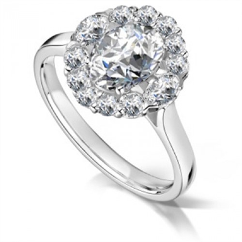 A gorgeous and elegant looking diamond cluster ring, with round and 3 oval shaped diamonds set upon a daylight shoulder shank.