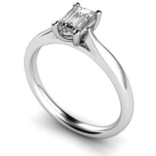 An elegant diamond engagement ring.The emerald cut diamond is set into a round 4 claw setting with tapered daylight shoulders. The diamond is mounted on a court shank. This design allows a perfect wedding ring fit.,