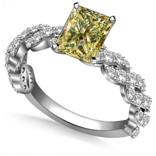 Fancy Yellow Radiant Cut Diamond Shoulder Set Ring