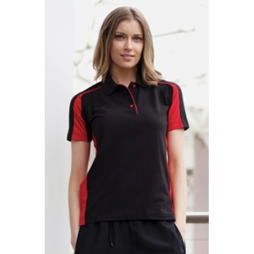LV391 Finden & Hales Ladies Club Polo. Contrast side panel. Piping and panel on sleeves. Taped neck. Contrast piped inner placket. Three button placket. Shaped side seams. Matches LV390.