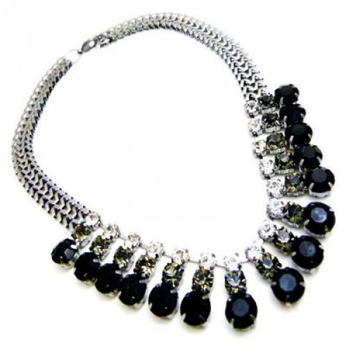 The perfect partner for this season's Ball, Prom or Party dress, flat black diamante and crystals set into this gunmetal necklace.
