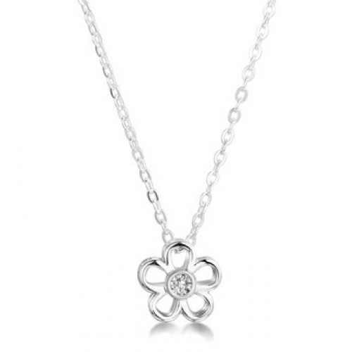A unique designer diamond set flower pendant consisting of one round brilliant cut held in the centre fully rub over set for extra security, this pendant is 10mm from top to bottom.