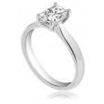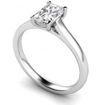 A beautifully set radiant cut diamond engagement ring, set in four prong claws with open sides for maximum brilliance. This is upon a plain polished open shank.