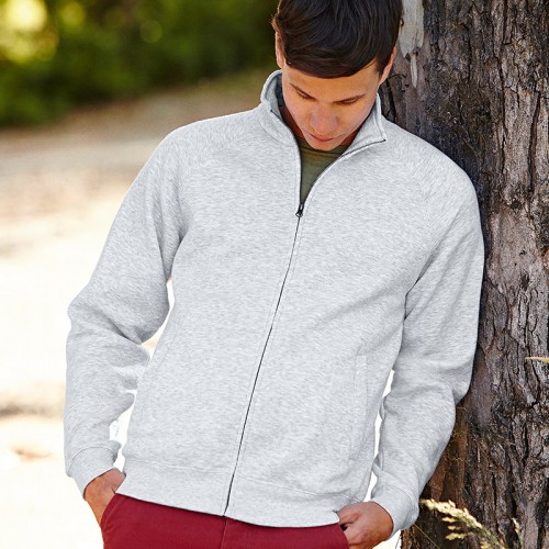 The Fruit of the Loom Classic Men's Sweatshirt Jacket comes with a turtle neck collar and herringbone back neck tape for wearer comfort. styled with raglan sleeves and twin needle stitching detail. This popular sweatshirt jacket comes with a full-length YKK pewter zip. Fashionably styled with 2 jetted front pockets the cuffs and hem are ribbed with Lycra for superior shape retention.