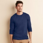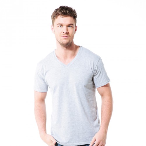 GD010 Gildan Softstyle V-Neck T-Shirt. Deluxe 30s Soft style yarns. Non topstitched ¾ rib knit collar. Taped neck and shoulders. Mitred V-neck pattern. Euro style fit in neck/shoulders/sleeves. Twin needle sleeve and bottom hems. Quarter-turned to eliminate centre crease.
