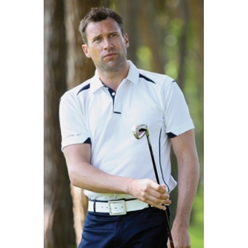 GM063 Glenmuir Barton Performance Polo. Cotton polyester performance polo with Hi-Cool® moisture management system. Button placket with self fabric collar and contrast piping and flashes. Glenmuir 1891 print on right sleeve.