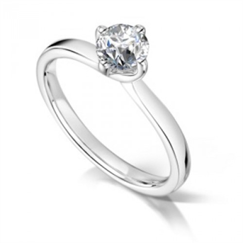 A beautiful diamond ring with a round brilliant cut diamond set in a 4 claw twist setting that is beautifully designed with 4 heart shaped bezel, set on a wedfit band.