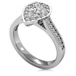 A gorgeous heart cut diamond cluster shoulder set ring with round brilliant cut diamonds placed within the shoulders and around the centre stone in a double halo setting.
