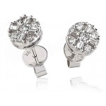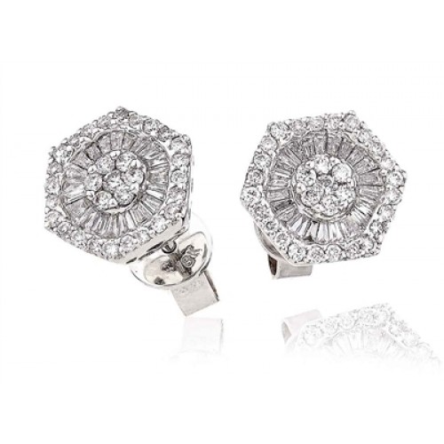 Hexagon Round & Baguette Diamond Cluster Earrings