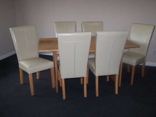This super 7pc Oak Veneer Dining Table Set will stand out a centrepiece in any room setting and includes 6 x Butterfly Designer Cream Dining Chairs.