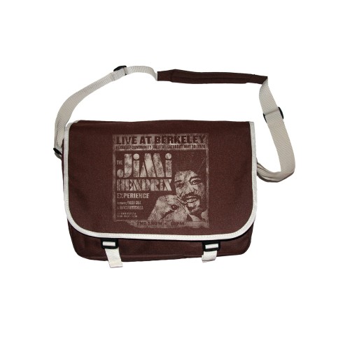 Unisex brown messenger bag featuring Jimi Hendrix Live At Berkeley print 100% cotton