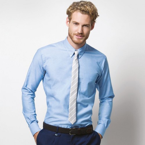 The Kustom Kit Men's Slim Fit Oxford Long Sleeved Shirt has a fused stand up collar. Button down collar. Double button cuffs with gamble placket. Double folded side and side seams (double stitched). Chest pocket to left side as worn. Single stitched yoke and armholes. Shirt tail hem. Darted back panel. Spare button. Kustom Kit Woven label. 50?? Wash Washing Instructions Machine wash 50 with bar under do not bleech , do not dry clean, do not tumble dry , two dot iron