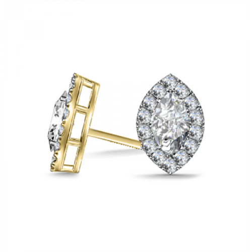 A Stunning pair of designer halo diamond earrings surrounded by round brilliant cut diamonds around the centre stone set in a pave/prong setting.