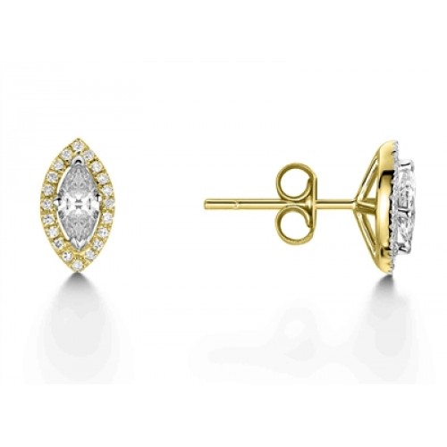 A Stunning pair of designer Marquise diamond earrings surrounded by round brilliant cut diamonds around the centre stone set in a pave/prong setting.