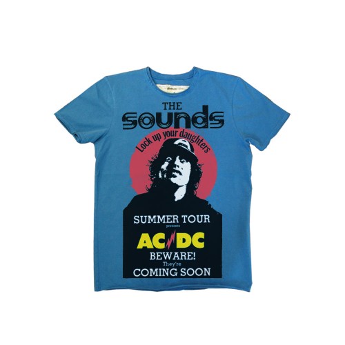 Slim fitting cobalt blue t shirt featuring a large distressed ACDC Sounds print and unique vintage finish. There is a raw edge detail around the neckline, sleeves and bottom hem line. The Amplified emblem is embroidered on the base, reverse of each t-shirt. 100% cotton. Machine Washable at 30 degrees.