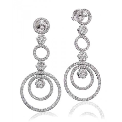 A beautiful pair of diamond drop earrings, consisting of round brilliant cut diamonds.