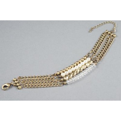 Add a touch of glamour with this gold and faux pearl bracelet. Reminiscent of the Roaring 20s, this chain link bracelet features a classic design that never goes out of fashion. Nesoi bracelet will add that finishing touch to any outfit.