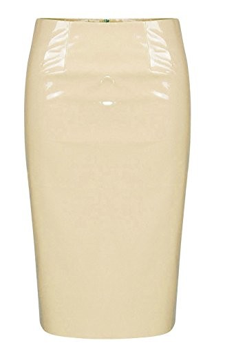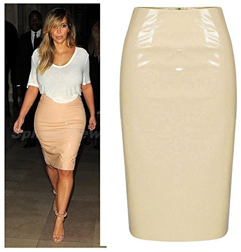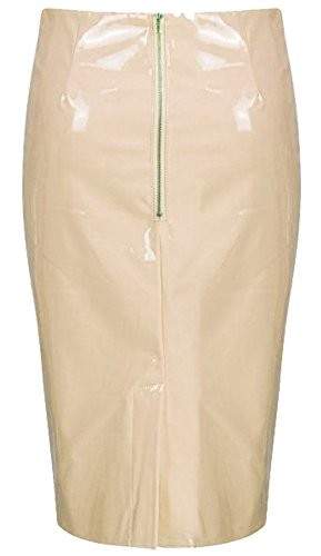 New Womens Ladies Celebrity Inspired Wet Look Midi Skirt (uk 8, Nude Pink)