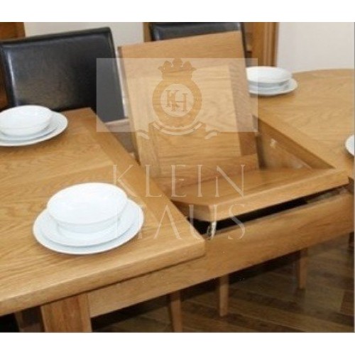 Dimensions: W180/220 x D90 x H78cm. This table has an innovative pulley expansion system. Some easy assembly required. View our full range of Klein Haus Sherwood Oak furniture in Bedroom, Dining, Occasional and Office. Also see our fantastic value room deals.