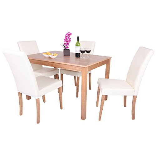 Oakden 5 Pcs Oak Dining Table And 4 X Faux Leather High Back Chair Set Wood (cream)