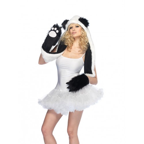 Plush panda hood with paw scarf,