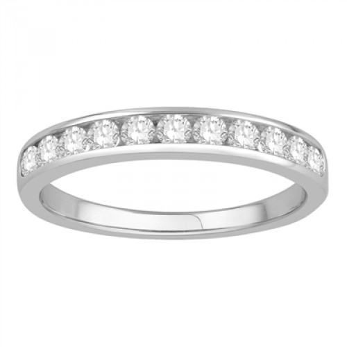 A diamond set eternity ring with round diamonds set in a channel setting. Approx 3mm wide.